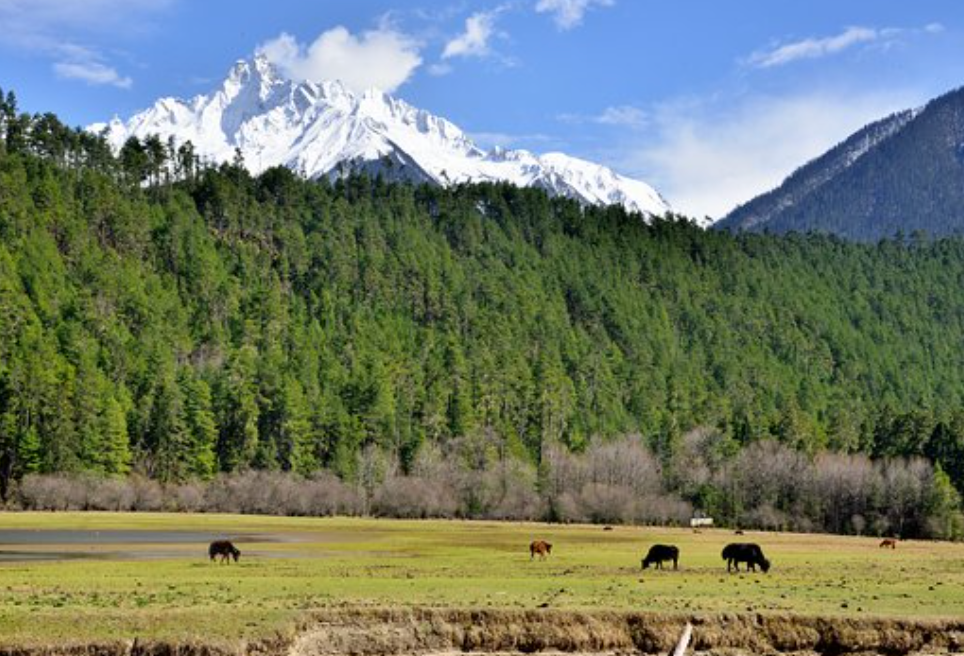 Afterward, continue your journey toward Lulang, passing through valleys and villages along the way. Lulang is known for its peaceful atmosphere, meadows, and wooden Tibetan houses. It will be your base for the evening.